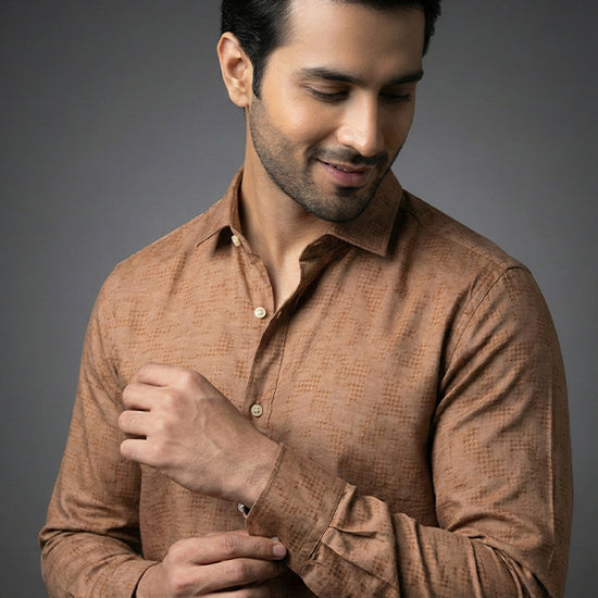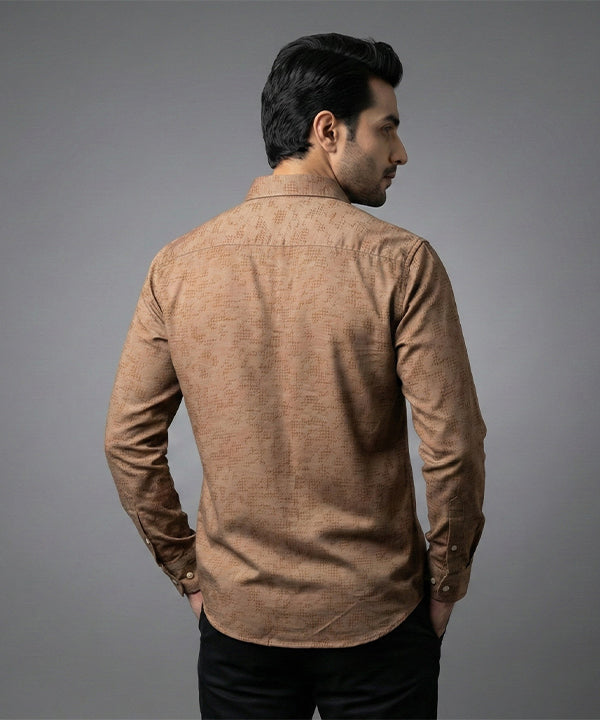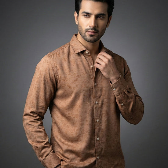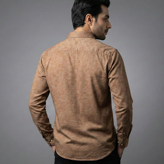 Men's Casual Shirt - Texture Brown Shc-1971 Strech Fabric (ORG)