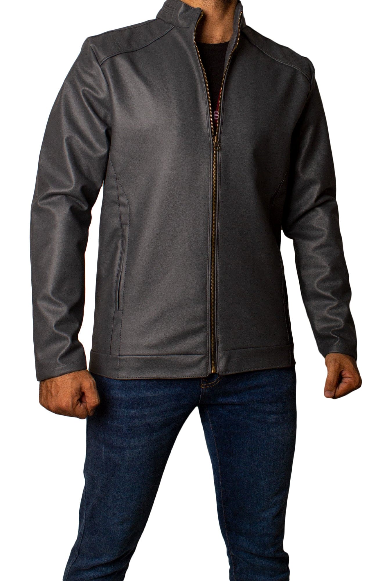 Men's Faux Leather Jacket Jk-0287 D-Grey
