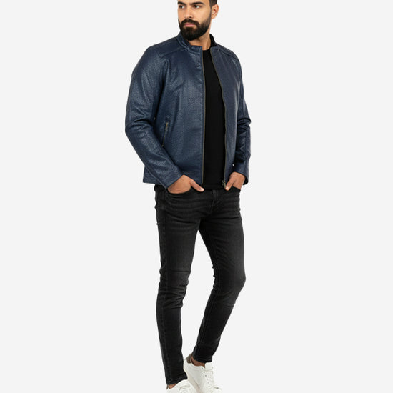 Men's Leather Jacket - Blue Jk-0314