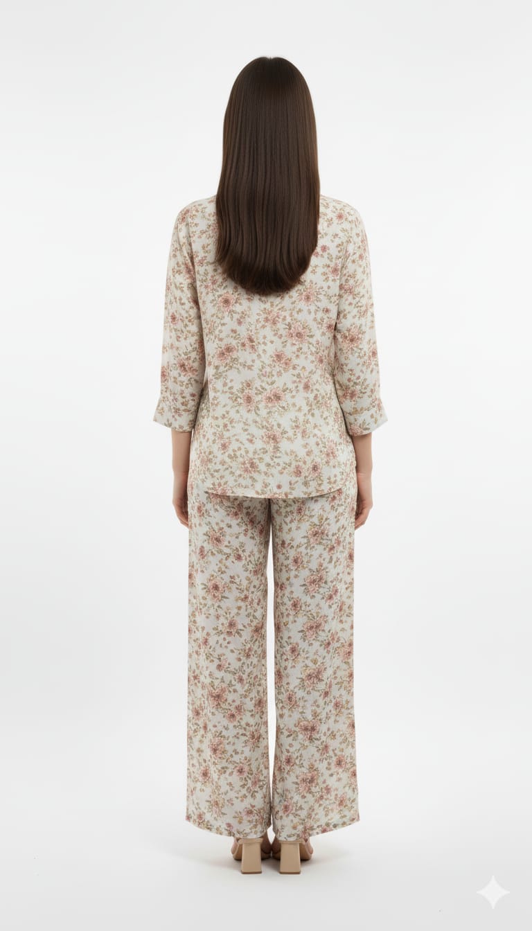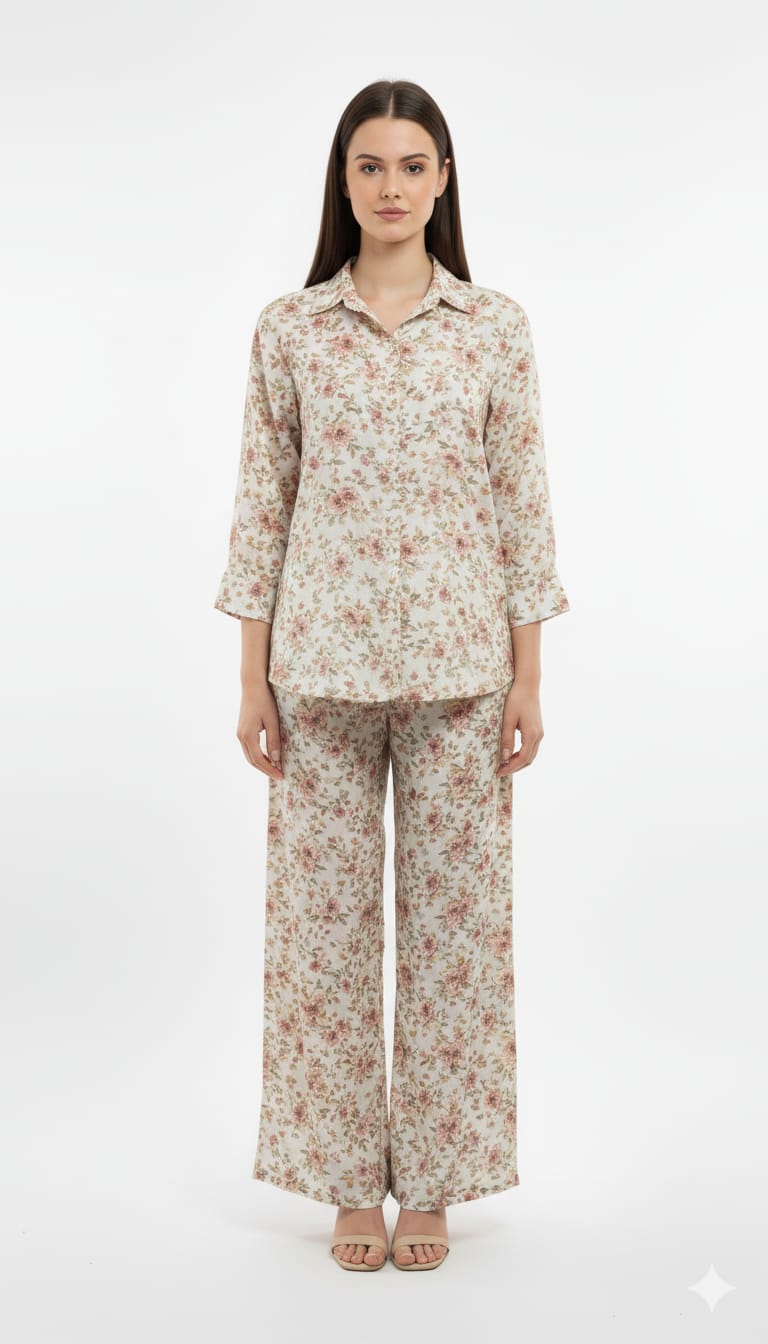 Women's Co-Ord Suit Beige Floral